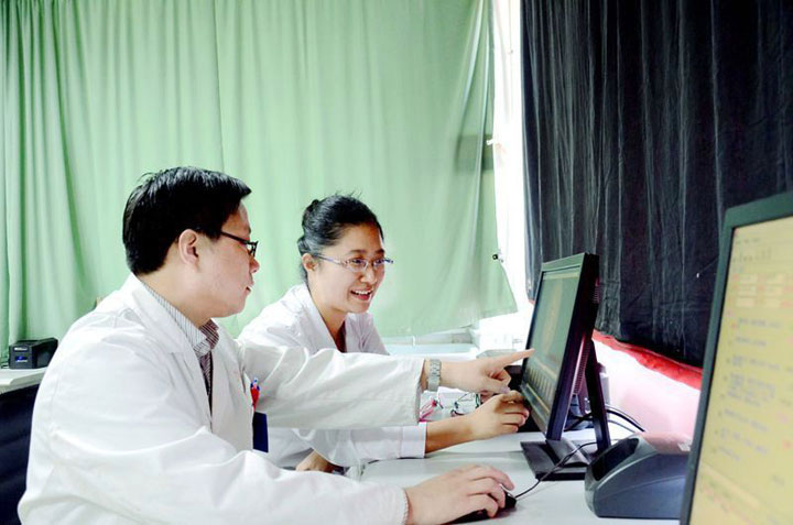 王佐副主任与褚源医师分析胶囊内镜数据 |