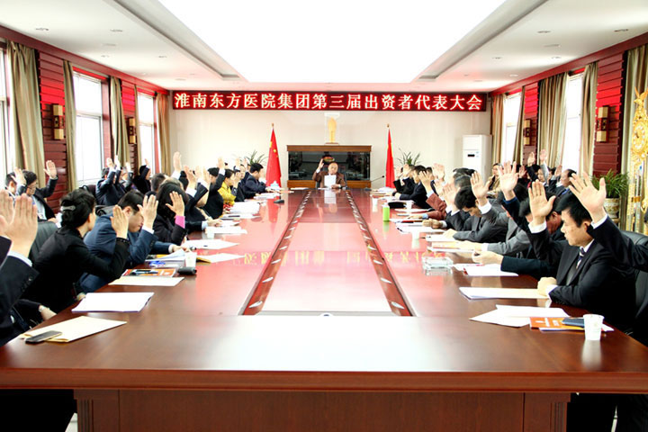 会议第二阶段,参会的全体出资者代表严格按照《民办非企业单位登记管理暂行条例》、《淮南东方医院集团章程》、《淮南东方医院集团员工出资权管理办法》的规定,认真审议了大会各项议题。经表决,会议审议并一致通过了《第二届董事会工作报告》、《第二届监事会工作报告》、《第二届董事会财务工作报告》、《淮南东方医院集团章程》修改方案、《员工出资权管理办法》修改方案、《淮南东方医院集团2015年—2019年五年发展战略规划》、《淮南东方医院集团第三届出资者代表大会选举办法》。