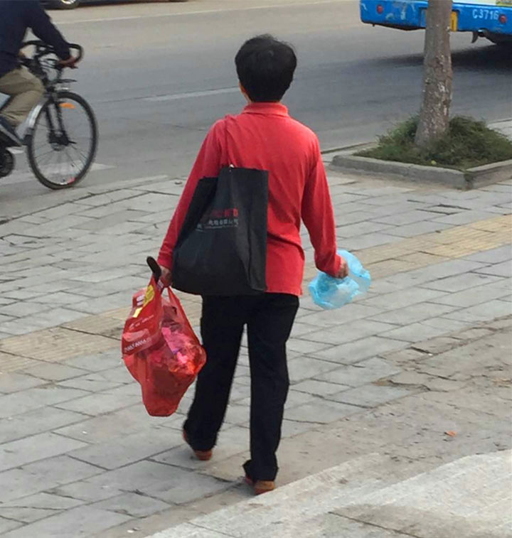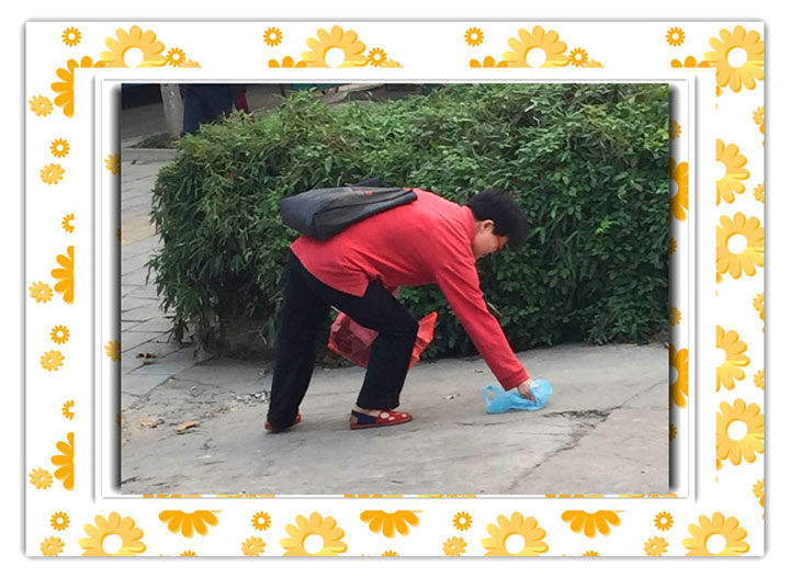 晨曦微露,在东方总院门口,一个身着红衣,肩挎黑色布包,手提垃圾袋的大姐引起了我们的注意。她在路边走着望着,只要看见垃圾,就会躬下腰,用手捡起。没有人要求,也没有薪水,红衣大姐用行动美了环境、美了心灵,她是城市最美的风景。