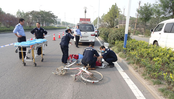 下午3时整,演练正式开始。新庄孜医院120急救站接到市120急救中心电话指令:在八公山第二通道某路段发生一起交通事故,行驶中的一辆微型货车和一辆自行车发生刮碰,造成骑车人连人带车摔倒在地,区交警大队要求派人前往抢救受伤人员并进行现场处置。