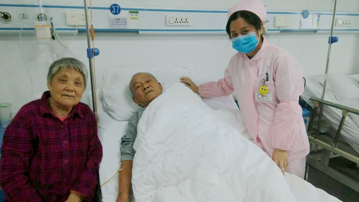 吴老康复后流露出高兴的笑容 |