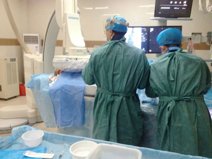 为此,吴老的老伴十分着急,找到东方总院泌尿科赵红主任,赵主任用化疗药物进行膀胱灌洗,疗效不佳,便建议行介入治疗。对此,吴老一家将信将疑,咨询了几家医院,均被告知没有更好的办法。一拖再拖,一晃几个月过去了,但老爷子仍然血尿,他的老伴心急火燎,夜不能寐,来到总院介入科。介入科黄主任等医务人员对吴老的检查资料进行了全面分析后,认为患者年龄大,有基础疾病,建议介入治疗。由于膀胱是一个空腔脏器,栓塞过度,将导致膀胱坏死,穿孔,若栓塞不佳,出血仍在,无任何效果。因此,做介入手术也存在风险。再三权衡,老伴决定做微创治疗,可当住院手续办好后,老爷子又不干了,拒绝检查,拒接手术。