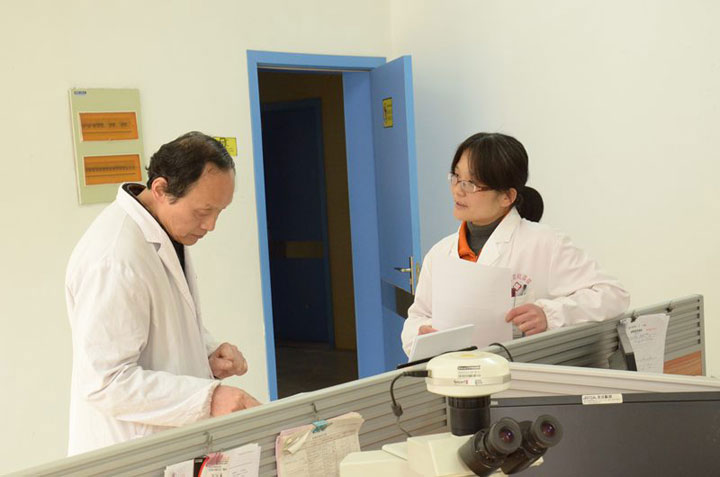 淮南东方总院病理科检测范围主要有活检和细胞学检查。负责活检病理这块工作的是病理科副主任段萍萍女士和病理科主任祁真玉同志两人。段主任的儿子今年读高二,爱人在外地工作,家里家外院里科里“连轴转”。上午一早来到科室投入紧张工作,中午不休息,下午经常不能按时下班,儿子就只好吃盒饭。去年,祁真玉主任受总院委派,赴吉大三院参加甲状腺穿刺培训班。祁主任外出期间,原来两人的工作全落在段主任一人的肩上。病理检测中,发现特殊情况,及时与临床医生反复沟通确认,得到临床医生的高度好评。在此期间,她的工作付出更多。可是,她不叫苦不叫累,出色地完成了各项任务。为此,科主任祁真玉同志一直记在心头。