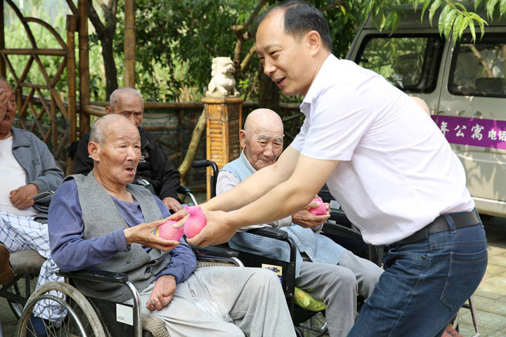 来到桃园居敬老院,江鸿方董事长、王多为院长、朱兴林书记一行为老人们带来了米、油、食品等礼物,与老人们亲切地聊天,并向杨萍院长询问老人的生活起居、饮食以及身体健康等情况,嘱咐老人要保持乐观的心态,好好地安享晚年。随行的工作人员们向在老年公寓门口聊天、打牌的老人们发放水果、饮料和食品,老人们感受到了温暖,脸上露出欢快的笑容,纷纷向慰问人员表示感谢。