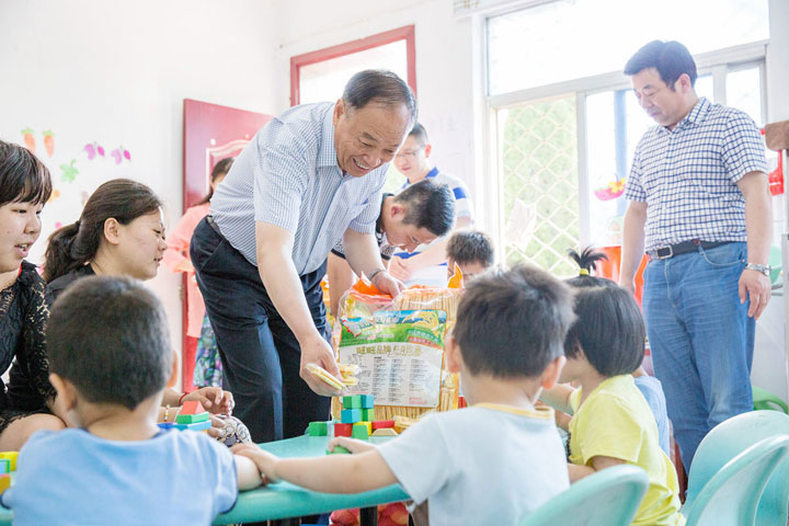 随后,江鸿方董事长一行来到市儿童福利院。这次,他们给孩子们带来的有玩具、食品,还为每个孩子准备了一双鞋子。儿童福利院顾本永院长和王丰副院长代表福利院的儿童们对江鸿方董事长一行表示热烈欢迎。江鸿方董事长向王丰副院长详细了解福利院儿童的身体和生活等情况,实地察看了儿童们学习、生活、居住、娱乐场所,对福利院的工作人员付出爱心和辛勤劳动表示由衷地钦佩。走进儿童们学习和娱乐的地方,江鸿方董事长为儿童们分发食品、玩具,孩子们高兴地大声喊道“爷爷好……”,参与慰问的员工们纷纷和孩子们互动,弯下腰来、蹲在地上和孩子们交流,抚摸他们可爱的小脸蛋,送给他们亲人般的祝福和温暖……