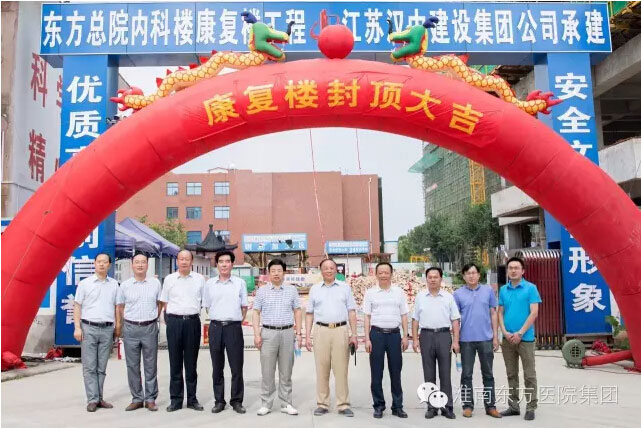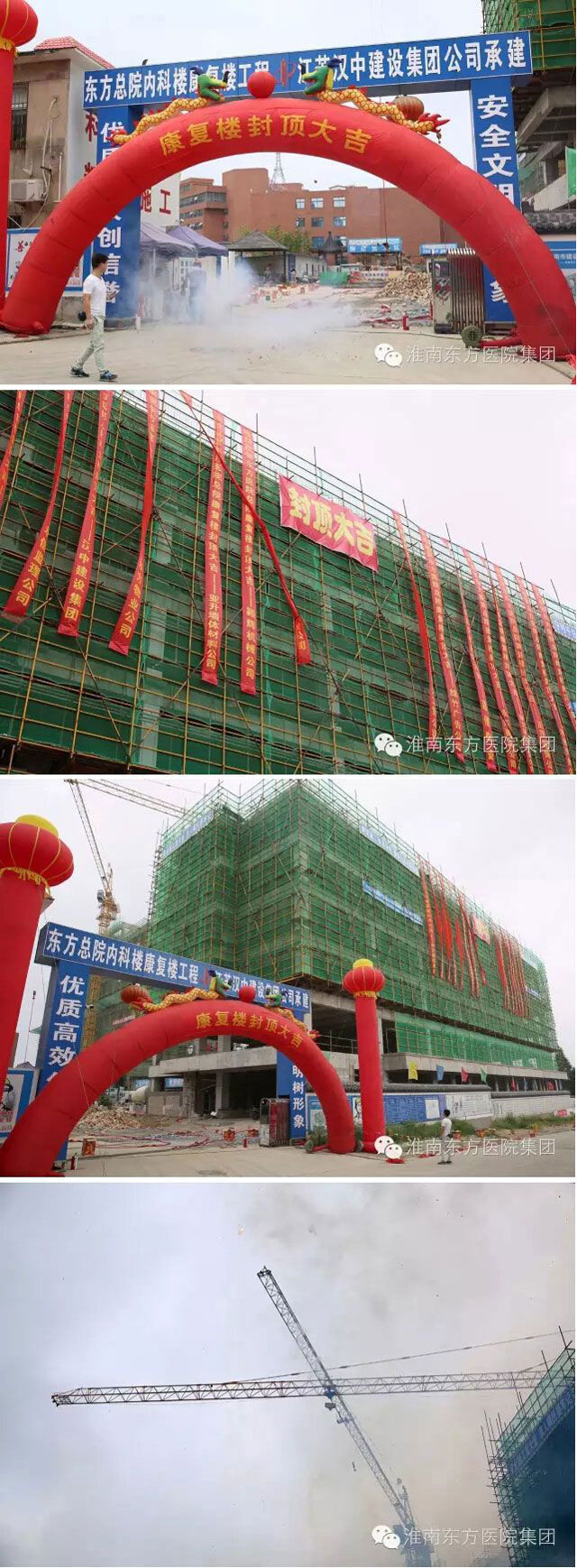 7月15日上午8点16分,在震耳欲聋的鞭炮声中,淮南东方总院康复楼正式封顶。