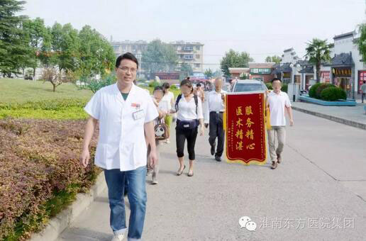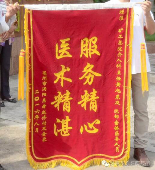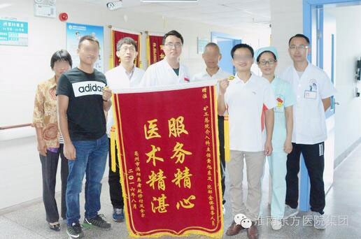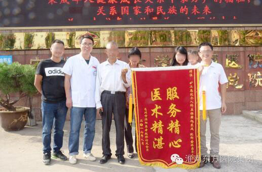 2016年8月28日上午七点半左右,有男女老少总共六人在东方总院大门口手持锦旗,并点燃鞭炮表示感谢。