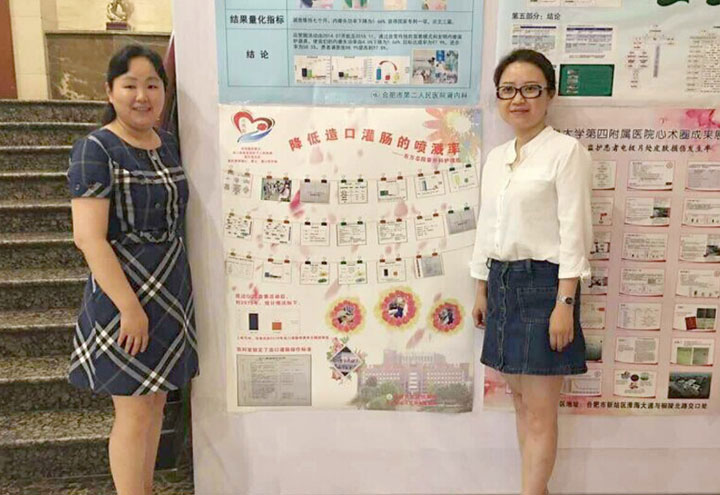 东方总院普外科自2013年开展腹腔镜结直肠癌手术以来,造口病人日渐增多,需要进行造口回纳的病人在手术前需通过造口灌肠清洁肠道,而肠道的清洁程度直接影响到病人的术后恢复,普外科护理组在工作实践发现,灌肠中的高喷溅率会导致灌肠液无法有效通过肠道,严重影响肠道清洁效果。这引起了她们的高度重视,于2015年12月~2016年4月开展了主题为《降低造口灌肠喷溅率》的品管圈活动,她们以“玫瑰”之名形容患者腹部上的造口,以“心、手呵护玫瑰”之形设计活动圈徽,将东方护理人形容成花匠,用细心、耐心、爱心呵护患者造口,并选定“玫瑰圈”为主题参加安徽省护理质控中心第三届品管圈交流会。