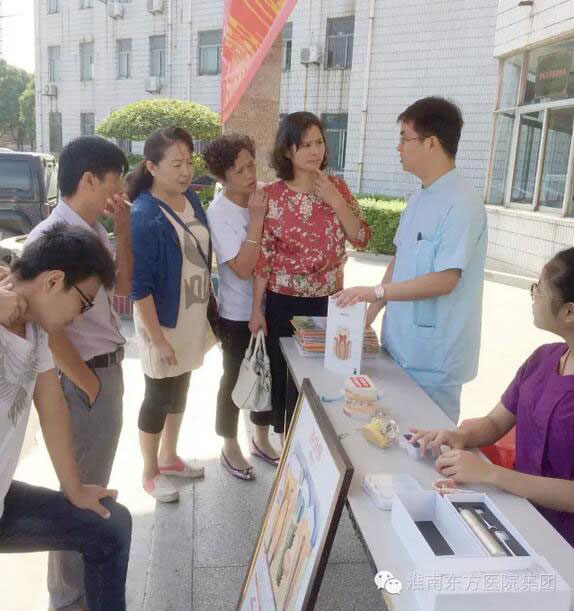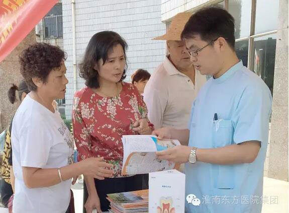 口腔科主任李继洲带领本科室的医护人员为前来就诊的居民开展了口腔健康咨询活动,宣传爱牙、护牙的重要性,介绍了电动牙刷、牙线、牙缝刷的正确使用方法,种植牙的适应范围,流程,优点等。