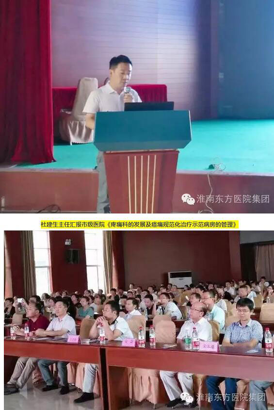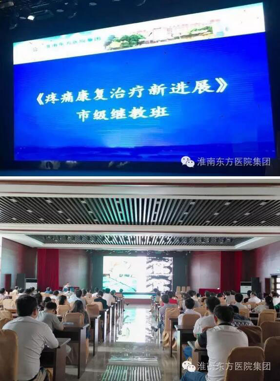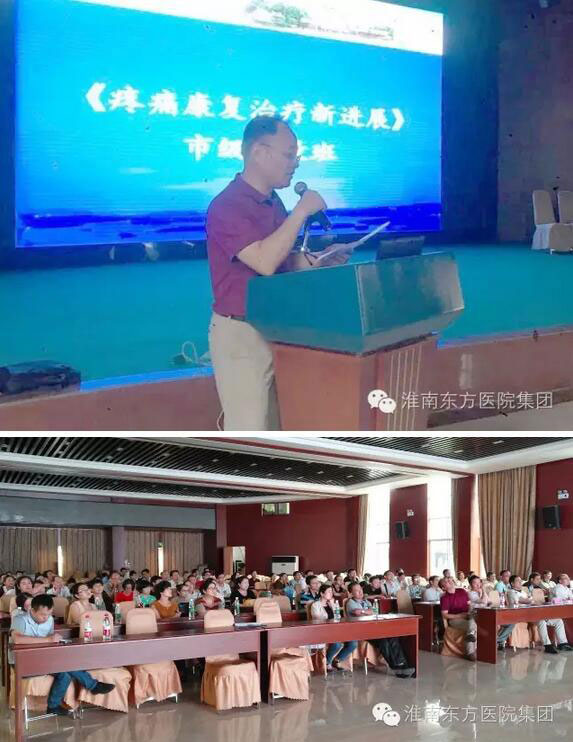 下午,在东方总院多功能厅举办了淮南市第一届疼痛学科的学术会议——《疼痛康复治疗新进展》市级继教班。参会人员近二百人,有来自各家医院的与疼痛相关的人员:疼痛科、康复科、骨科、麻醉科、神经内科、还有来自外市疼痛科医生同道。