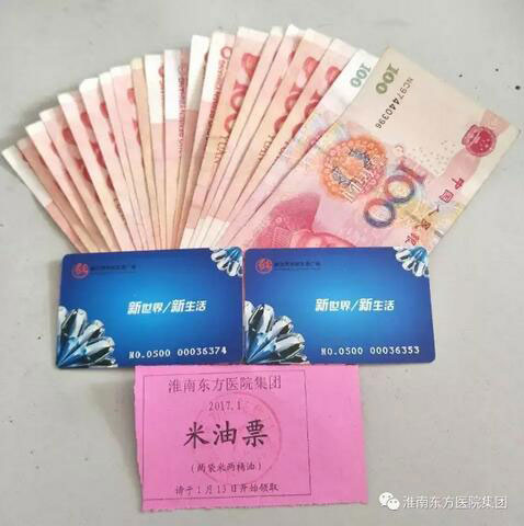 时值岁末年初,淮南东方医院集团早早地为全体职工准备好年终福利——两袋大米、两桶油,2000元现金,1000元新世界休闲广场购物卡。在他们辛勤工作一年的最后时刻送上一份“暖心暖胃”的年终福利!