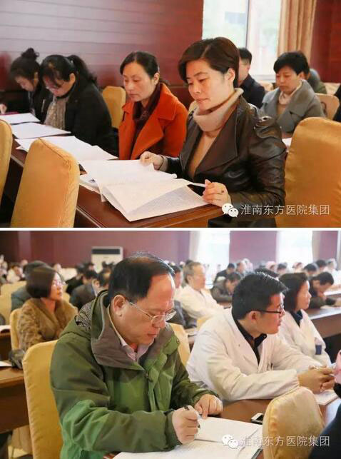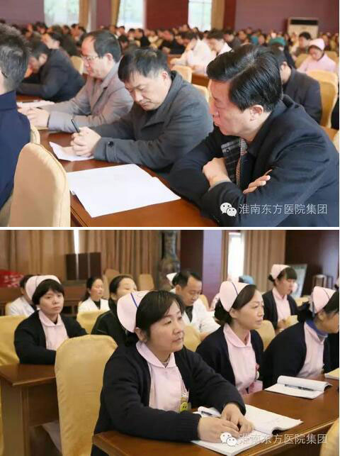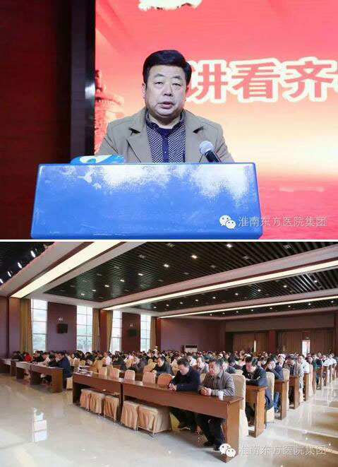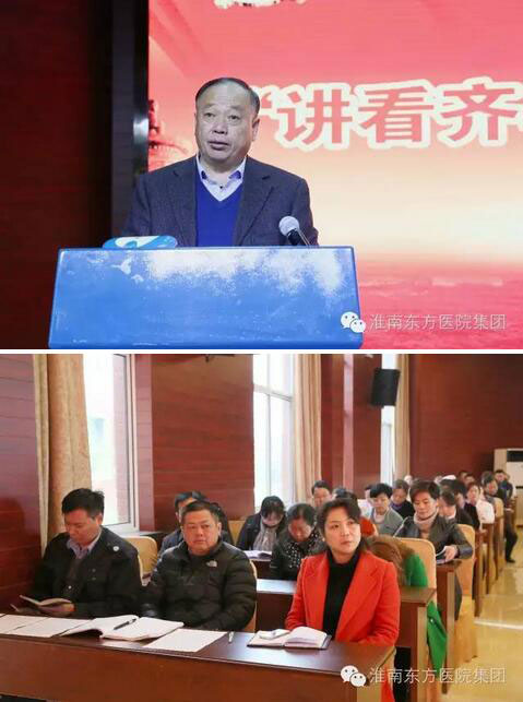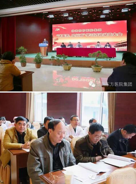 医院集团党委副书记朱兴林同志宣读了淮南东方医院集团《关于在全体党员干部中开展“讲看齐、见行动”学习讨论实施方案》。随后,医院集团党委书记、董事长江鸿方同志代表医院集团党委做动员报告。江鸿方董事长指出,这次动员大会的主要任务是,深入学习贯彻党的十八届六中全会、习近平总书记系列重要讲话特别是视察安徽重要讲话精神,省委、市委“讲看齐、见行动”学习讨论动员大会精神,对在全集团党员干部中开展“讲看齐、见行动”学习讨论进行动员部署,教育党员干部增强看齐的思想自觉和政治自觉,坚定地把全面从严治党决策部署变为实际行动,坚定地以新发展理念统领发展全局,奋力闯出医院集团改革发展新路径。医院集团学习讨论实施方案是根据市委《方案》精神、结合医院集团实际制定的,经过了党委会集体研究通过。