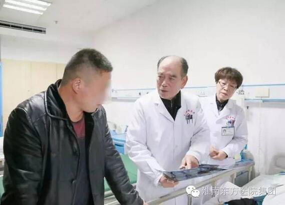 去年,老人的老伴突然口吐血沫昏迷不醒,连自己的老伴都不认识。全家人哭成一团,认为这下大难临头。王希初医师望着病人的CT片,脸色逐渐严肃起来。这时,淮南东方医院集团董事长江鸿方和其他神经科、脑外科等专家都赶来了,他们凝视着CT片上的“黑块”,都默不作声。