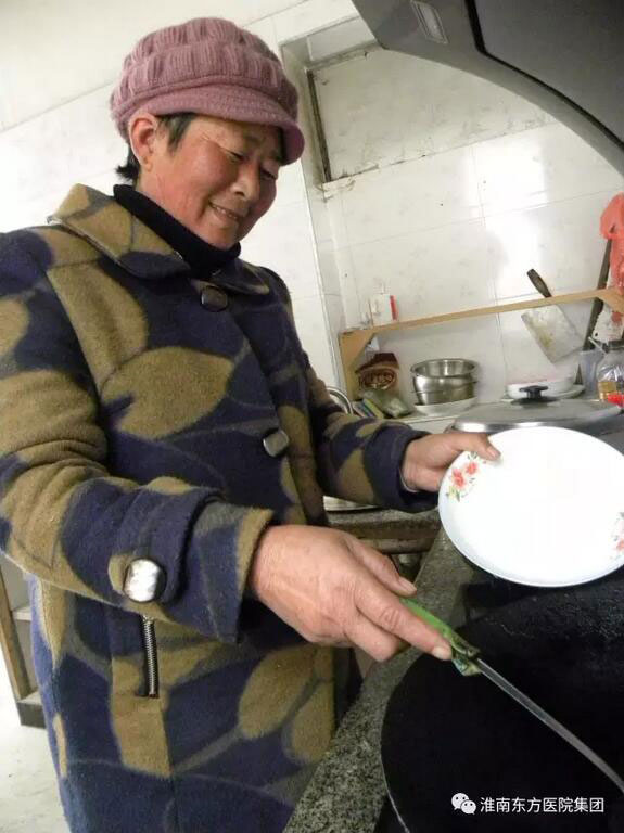 图3上的这位花甲老奶奶叫蒋普兰,家住淮南郊区史院乡。今年9月27日求诊于张德辉主任时,神志昏迷,双侧瞳孔放散大,光反射消先,眼球固定,四肢过伸,检查结果为蒋奶奶的左额部有一个大小6×6cm占位,周围大面积水肿,脑干受压变形,生命垂危,儿女们见状,个个泪流满面,后经张德辉团队手术后恢复的非常好,蒋奶奶的儿女们在合肥务工,属空巢老人。目前,蒋奶奶不仅能带好两个上幼儿园的孙女和一个上小学四年级的孙子外,还能做些简单的农活。你看,蒋奶奶正在厨房忙着呢!
