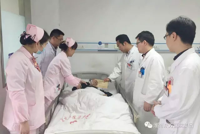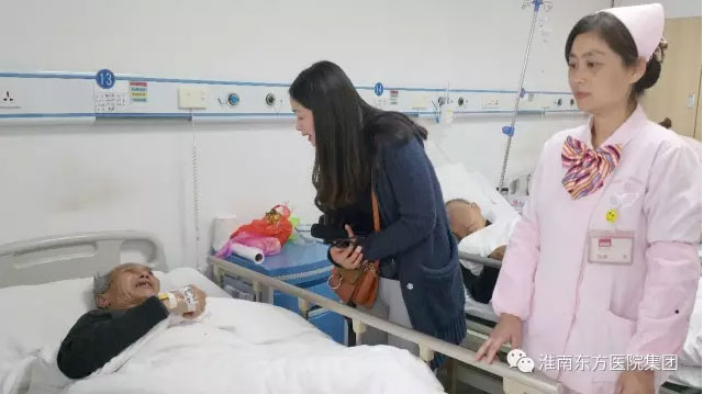 当科室医护人员将老人的情况报告给总院院领导后,总院领导高度重视,指示积极援助该名老人。由医院出钱为老人请了专业的护理人员,每天对老人进行精心的护理。淮南东方医院集团总院团委副书记高涛涛更主动带领医务人员去看望老人,并从医院集团特困病基金中申请一千元捐助给老人。老人多次感动的留下眼泪,医院甚至还为老人考虑到出院以后的生活和护理等问题,并积极联系市电视台为其呼吁社会各界爱心人士为老人进行捐款。