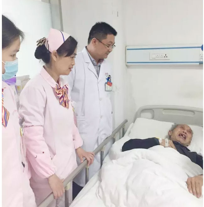 老人听闻淮南东方医院集团总院那么多领导及医护人员为自己奔走帮忙,感动的热泪盈眶,泣不成声。东方总院神经内科副主任朱高春介绍说:现在,老人病情稳定,后期如能得到适宜的护理,老人应能再次站起来,生活基本自理。但现在的状况令人担忧,不仅无人护理,连吃喝拉撒都是大问题。目前,东方医院和电视台工作人员积极联系老人的亲属和当地民政部门,争取早日把老人安置到当地养老院,解决他的后顾之忧。