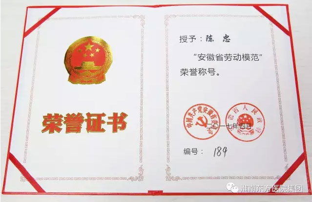 4月28日,安徽省劳动模范先进工作者和先进集体表彰大会在合肥召开,东方总院CT室主任陈忠同志在大会上受到表彰,被授予“省劳动模范”光荣称号。省委书记李锦斌、省长李国英等省党政军领导向受表彰的省劳动模范、省先进工作者、省先进集体代表颁奖。受表彰的先进个人、先进集体代表、省暨合肥市各界群众代表等共约1600人参加会议。