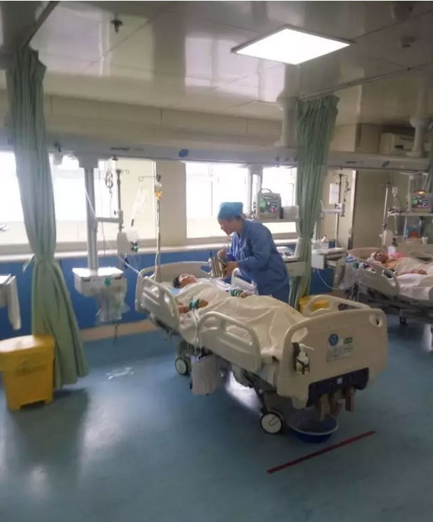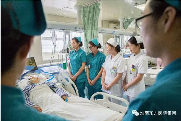 “治疗为先,病人的日常护理也不能懈怠。患者和家属每天只有半小时的探视时间,他们内心的焦虑和不安是我们难以理解的。要记得:在你看来病人再小的事情,对于患者和家属来说就是天大的事情”,东方集团总院ICU护长刘朔如是说。在ICU,护理人员的职责不仅仅是穿刺输液那么简单,亦不仅是发药给药那么轻松。要的却是把病患当亲人的热诚与关怀。这句我一直认为书上的套话,在ICU护士给病患的翻身扣背,洗澡擦身,喂饭喂药中得到了最淋漓尽致的诠释。在ICU全体医护人员高涨的工作热情感染下,保洁工作者也加入了这场永不停歇的生命保卫战。