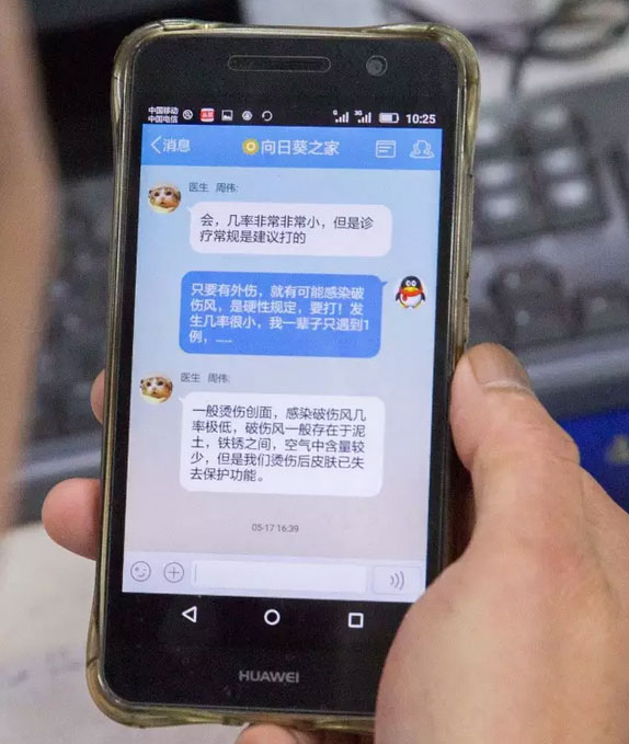 其中有一位家住淮南泉山湖年纪在三十左右的男性患者,去年九月由于遇上电瓶车失火的意外,脸上、双上肢、双下肢、后背、脖子等处多达65%的烧伤面积。在烧伤科住了三个多月,在烧伤科医护人员的积极救治和悉心照料下现在已经痊愈了,临出院前他写下了这样的感慨并贴在了病房的照片墙上“生命因平安而幸福,快乐因平安而美妙,愿一生平安!这里的护士最美!”如今他已经开始了全新的生活并和烧伤科的医护人员成为了朋友,经常与他们在群里聊天。对于医患病友群他也感到“非常方便,不用来回跑,很满意!”