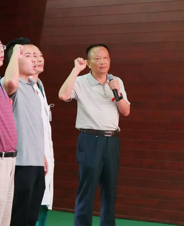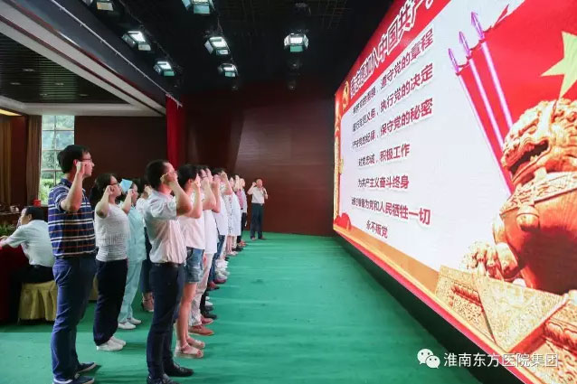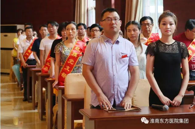 随后,医院集团董事、总院院长王多为同志带领新发展的30名预备党员宣誓。面对鲜艳的红旗,兴奋的预备党员们举起右手,逐字逐句、铿锵有力发出了自己的誓言。江鸿方董事长强调:各位新党员务必牢记誓词,认真学习党章党规和习总书记系列重要讲话,努力成为一个“政治合格、执行纪律合格、品德合格、发挥作用合格”的党员。
