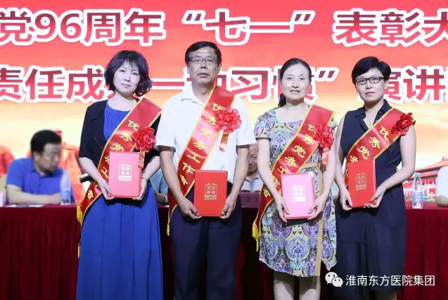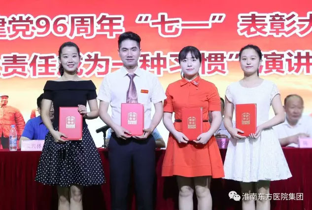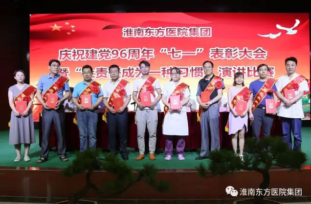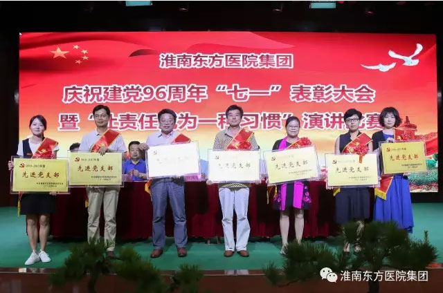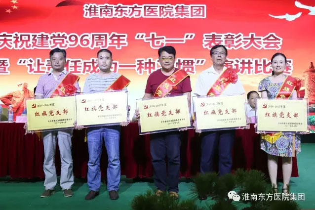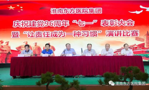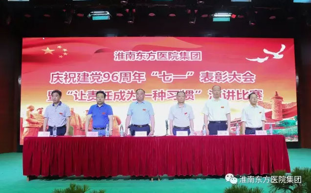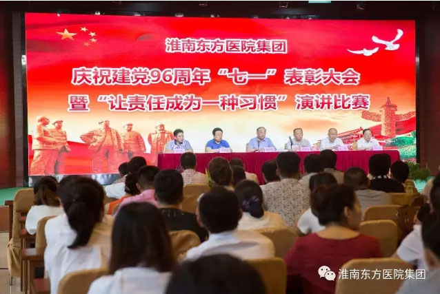 2017年6月30日下午,医院集团在总院多功能厅举办庆祝建党96周年表彰大会暨“让责任成为一种习惯”演讲比赛活动。活动由医院集团党委书记、董事长江鸿方同志主持,受表彰的红旗党支部、先进党支部、模范共产党员、优秀共产党员、党风廉政建设先进个人、预备党员和党员代表近300人参加了七一大会。