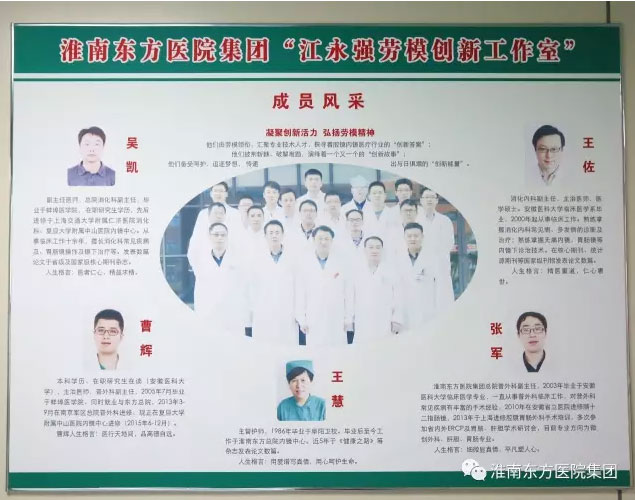 十年前,江永强院长主动请缨赴安徽省立医院学习ERCP技术,学成至今,江永强院长领导的的团队已累计开展1500多例ERCP,而致死并发症率远低于其他医疗机构,做过的年纪最大的患者94岁,最小患者6岁,这些成绩在全省乃至全国都是名列前茅的,目前,普外科肝胆胰外科团队能够开展肝内外胆管结石、肝胆胰脾系列良性肿瘤、肝胆系统先天畸形等所有的肝胆胰脾系列手术,成立了安徽省ERCP培训基地和肝胆胰外科安徽省重点实验室,把微创治疗肝胆胰疾病技术推向了全省乃至全国领先水平,广受社会各界好评。江永强院长将肝胆胰外科组扶上马,带上事业高峰之后,并没有丝毫懈怠停滞,已身为副院长,分管众多医院行政事务的他,并没有离开他心爱的外科战场,继而转战胃肠外科领域,在他的带领下,胃肠外科团队发展迅猛,每年进行腹腔镜下胃、结直肠癌根治术120多例,在淮南市位列前茅。此外,内镜下胃肠道疾病治疗(EMR、ESD)、患者术前、术后肠内、肠外营养支持、复杂肠漏及严重腹腔感染处理等技术独步淮南市医疗界,东方总院胃肠外科是目前淮南市唯一一个可以处理复杂肠漏的医疗场所!众多患者慕名或赴省级医院就诊后再经其医院专家介绍而转至总院胃肠外科就诊。