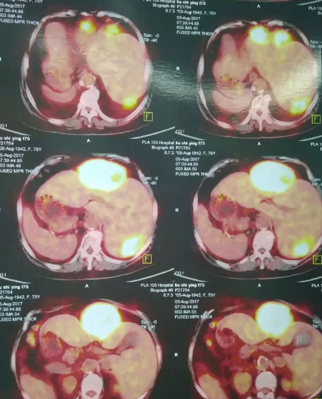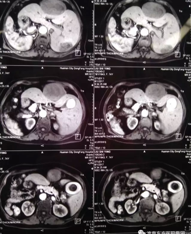 这位病人是75岁的刘老太大,长期居住黄山市,无意发现左侧上腹部“拳头”大小包块伴有隐痛,在当地中医院就诊,检查提示“肝脏多发肿瘤,胆囊内充满结石,右位心,冠心病”。因未接触过如此罕见疑难疾病而建议转上海、北京等上级医院治疗。病人子女在我市工作,抱着一线希望,带着老人来到我院肝胆胰外科。入院后完善相关检查,很快明确了诊断:肝脏IV、VII段两处肿瘤(原发性肝癌),最大的约10cm,胆囊充满性结石伴胆囊炎,冠心病,心律失常,高血压病,器官反位(镜面人)。虽然总院肝胆胰外科有着每年数百例肝胆手术的经验,但如此罕见变异,合并多种基础疾病,高龄的肝脏恶性肿瘤病人,尚属首次接诊,并无成功经验可循。