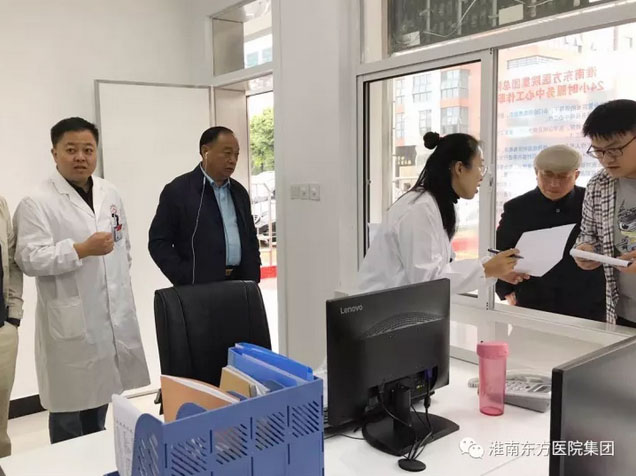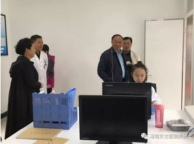 10月12日,淮南东方总院在淮南首创的“24小时便民服务中心”正式投入运行。一大早,董事长江鸿方一行冒雨赶往“24小时便民服务中心”,视察该中心运行首日的情况,并对下一步需要改进的地方做出指示。今后患者就诊前咨询、部分患者的治疗后回访、投诉建议等多项需求均可通过该服务中心完成。