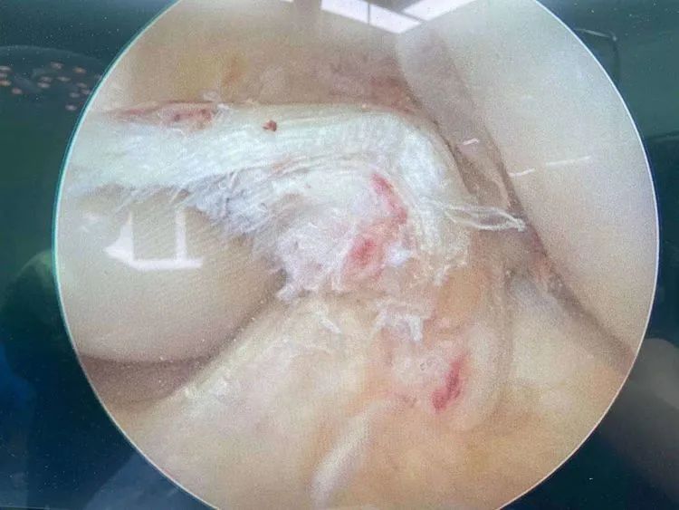 关节镜检见患者交叉韧带撕裂
