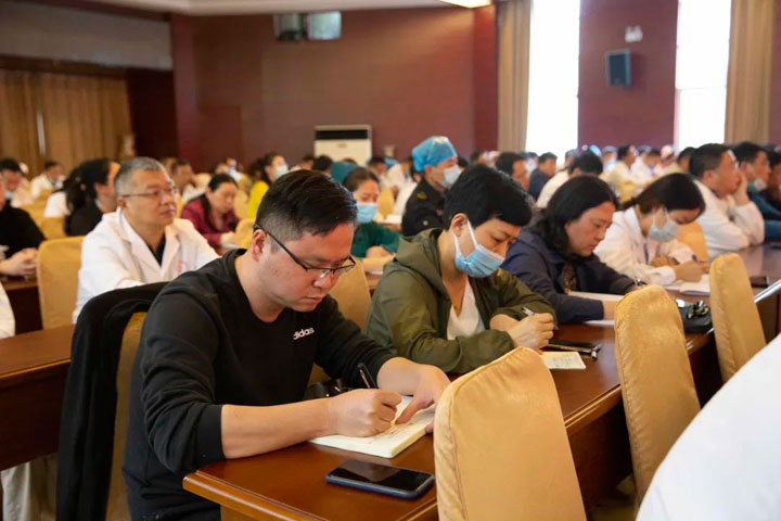 随后,詹一朝副院长做总院第一季度医疗质量反馈报告。詹院长从一季度全院医疗指标、临床科室运行情况、各临床、医技科室考核综合排名情况等十八个方面,以及医政部、护理部、质控办、药学部、院感、纪委、物价等职能部门督查情况,全面详实的进行了综合反馈。表扬了排名靠前的科室,同时也对部分指标相对落后的科室提出批评和改进要求。在解读《医疗保障基金使用监督管理条例》时,詹院长要求各科室要坚决贯彻落实《条例》精神,全员培训,人人知晓,做到“四合理”即合理检查、合理用药、合理治疗、合理收费,以及医嘱、报告单、病程记录、收费“四统一”,全面规范医疗行为。同时,对持续整治收受“红包”、“回扣”,纠正扰乱医疗服务领域行业秩序行为,全面构建“亲清”型廉洁规范的医商关系,进一步加强和完善行风管理等提出明确要求。詹院长还就医院近期即将开展的医疗质量与安全月活动,积极推进DIP付费工作,持续推进医院等级创建等工作进行了精心部署。