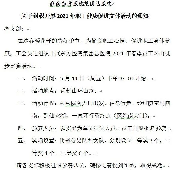 5月14日下午,雨后放晴,东方医院集团总院医务人员环山徒步健康促进活动如期举行。