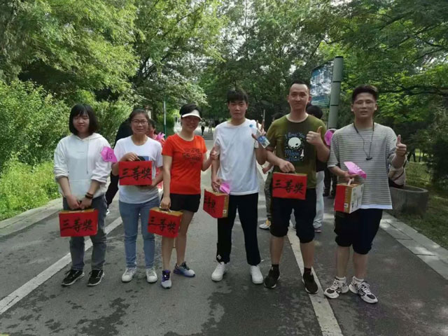 不到一个小时,检验科王莉莉第一个到达终点,获得女队第一名,接着, CT室余飞第二个到达终点,获得男队第一名。大约十几分钟内,第二名、第三名全都到达。随后,其他队员们也都安全到达终点。虽然没获得名次,但都表示玩得十分开心,平时繃紧的工作之弦得到了放松,愉悦了心情,促进了身体和心理健康!