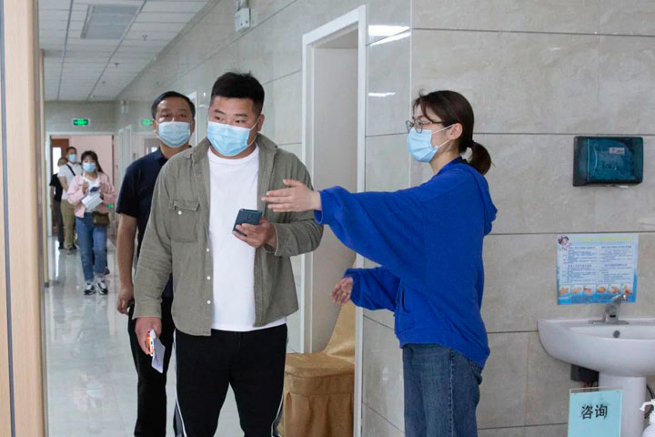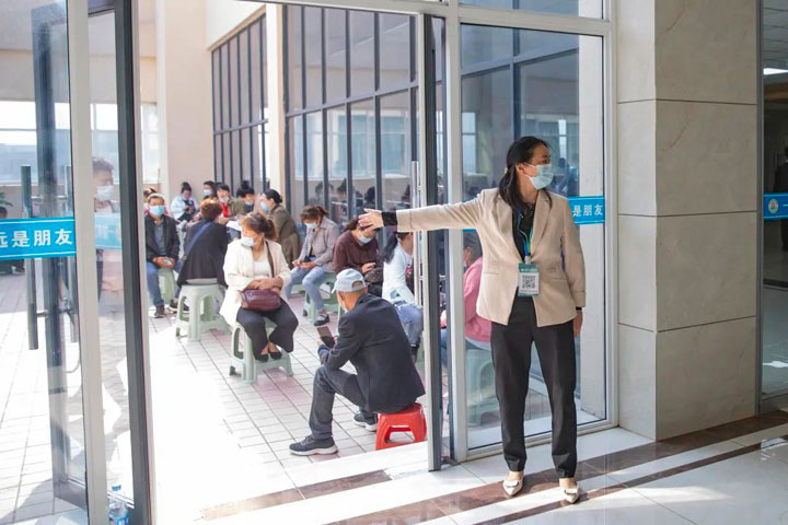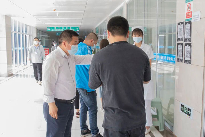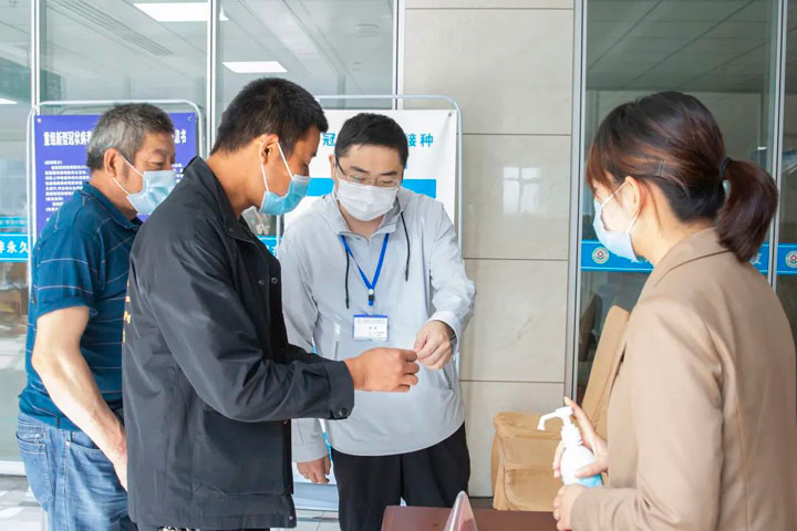新冠疫苗接种现场,总院机关支部志愿者们为接种的群众提供协助填表、接种登记、宣传引导等服务,还帮助大家有条有序、顺利接种,并及时为群众答疑解惑。他们的加入为疫苗接种分担了很多工作量,同时提高了疫苗接种效率。机关支部书记刘艳华表示:“现在接种疫苗的市民非常多,每天接种人次都在1500-2000,仅靠医护人员难以应对,机关支部的同志们应该行动起来,做到‘哪里有缺口,我就补哪里’。”