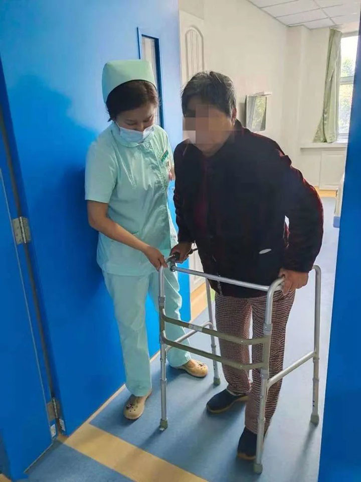 术后马大娘恢复良好,正在积极的进行术后康复训练。家属告诉笔者,“年初来过一次,当时医生说脑梗(脑梗塞急性期),不能手术。现在脑梗好了(脑梗塞恢复期),所以来手术了。早就听说东方集团好,医生技术好,态度也好。广济医院离我们近,来这里看病方便......”
