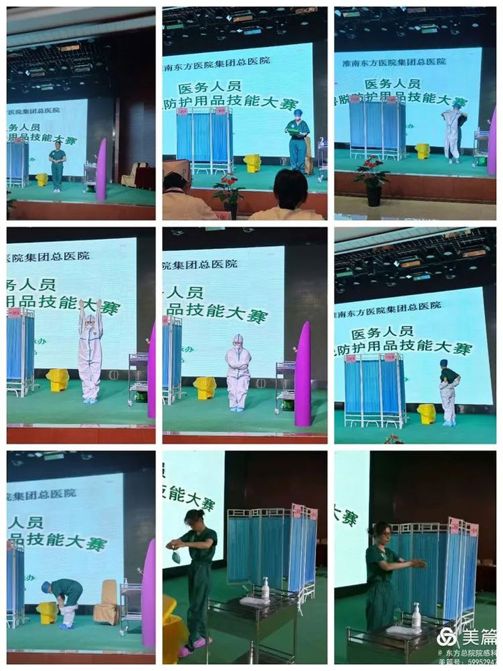 随着《医疗机构内新型冠状病毒感染预防与控制技术指南(第二版)》、《新型冠状病毒肺炎防控方案(第八版)》的相继颁布,为进一步做好新型冠状病毒肺炎疫情防控常态化工作,全面落实“外防输入、内防反弹、人物同防”的防控策略,最大限度降低感染发生,同时为强化医务人员熟悉、掌握防护用品穿脱技能,提升感染防控意识和自我防护能力,淮南东方医院集团总医院根据院领导的统一部署要求,于5月26日下午3点在多功能厅举办新冠肺炎防治专题培训与医务人员穿脱防护用品技能大赛。