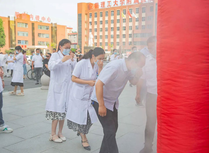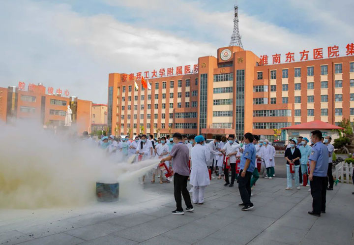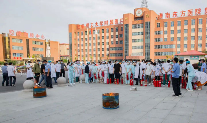 此次演练特邀请到淮南市国安防火教育咨询中心消防宣传教员王国军为大家进行专业消防指导,淮南东方医院集团董事长江永强、总院党委书记陆宝、常务副院长詹一朝、党委副书记杨策、院长助理樊忠胜、纪委副书记、副总经济师孙正及总院临床、机关、后勤各科室工作人员参加演练。