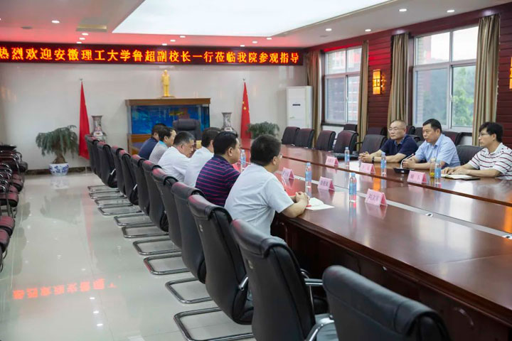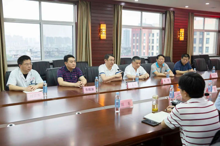 2021年7月7日下午,安徽理工大学副校长鲁超、医学院党委书记刘群红、医学院院长胡东一行三人来到淮南东方医院集团总院考察指导医院教学工作,淮南东方医院集团董事长江永强带领院领导班子和相关职能部门负责人参加了会议。