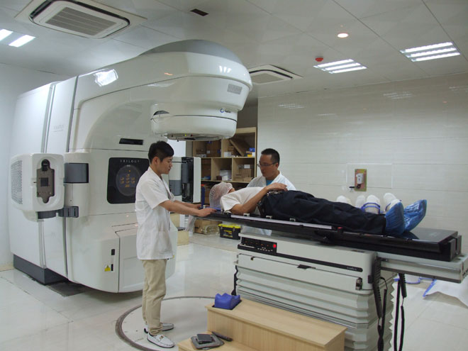 软件的提升带动硬件的不断更新。2014年,医院巨资引进世界最先进的美国Trilogy瓦里安直线加速器,该加速器具有高强度、灵活性、可靠性等特性。可实现包括图像引导放疗技术(IGRT)、调强放疗技术(IMRT)、三维适形放疗技术和立体定向放疗技术(SRT,X-刀)快速拉弧照射技术(RapidArc)在内的几乎所有当前主流放射治疗技术。配合LAP激光定位系统,可对人体任何部位的肿瘤进行精确的放疗。真正实现了肿瘤精确定位、精确计划、精确验证、精确治疗的四精境界,减少肿瘤病人的痛苦,改善生活质量、延长病人的寿命,提高了恶性肿瘤的治愈率和缓解率,实现了肿瘤治疗的重大突破。