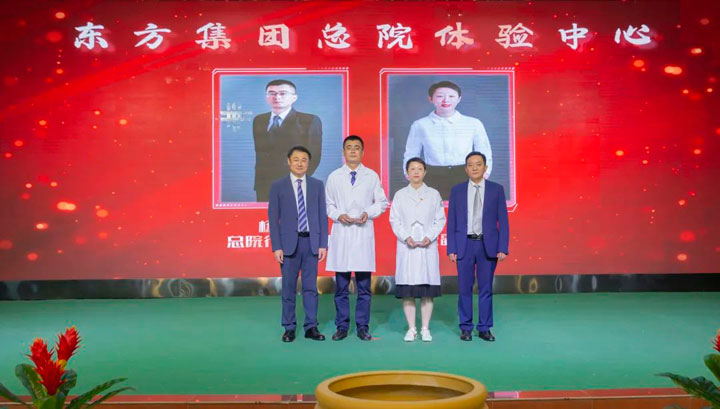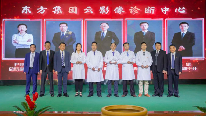 集团领导为东方医院集团云影像诊断中心,院长陈忠、医疗中心副院长张玉超、总院行政主任刘基、总院副主任尹婷婷、总院副主任王康颁发聘任奖杯。