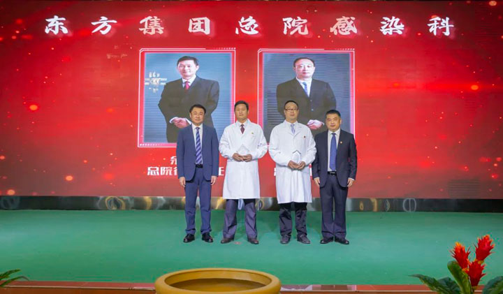 集团领导为东方医院集团总院感染科行政主任余永胜、总院副主任王宋和颁发聘任奖杯。