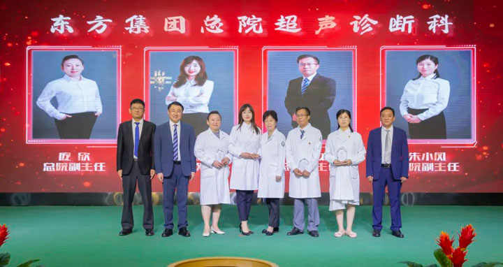 集团领导为东方医院集团总院超声诊断科行政主任翟哲、总院副主任代克龙、总院副主任朱小凤、总院副主任庞欣颁发聘任奖杯。