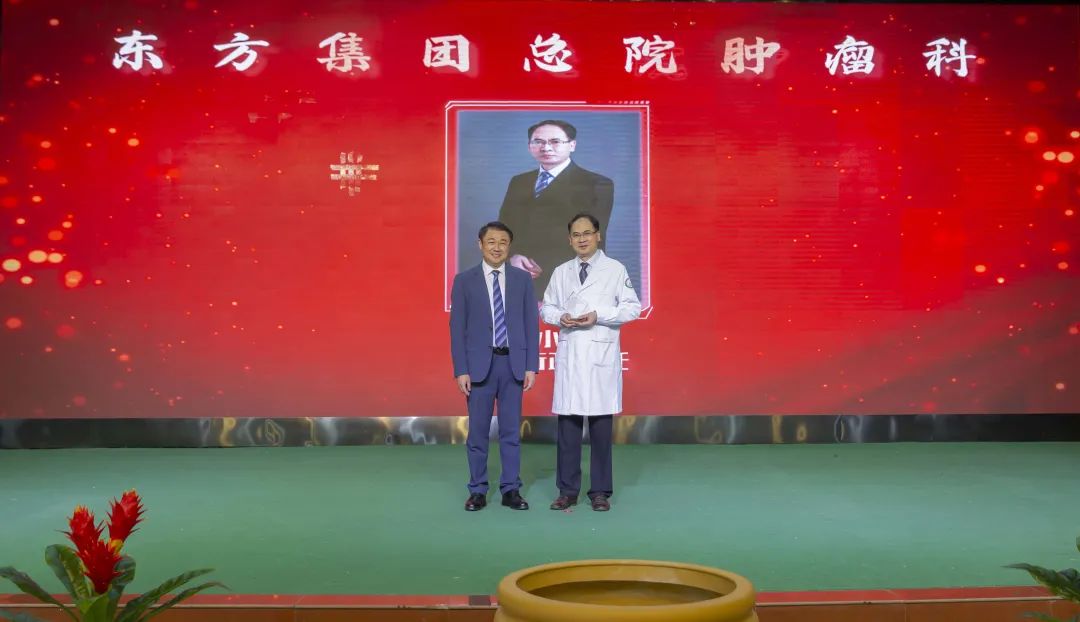 集团领导为东方医院集团总院肿瘤科行政主任朱小龙颁发聘任奖杯。