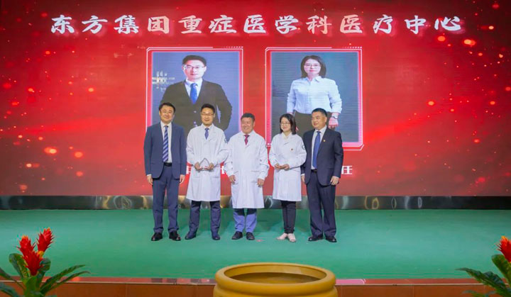 集团领导为东方医院集团重症医学科医疗中心院长李有志、总院行政主任汪水玲颁发聘任奖杯。