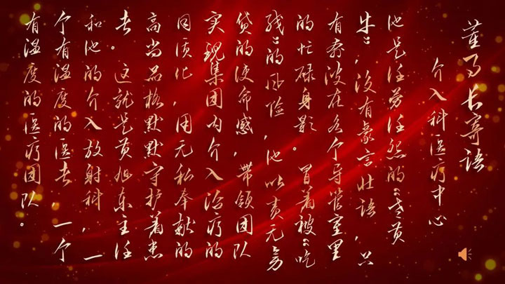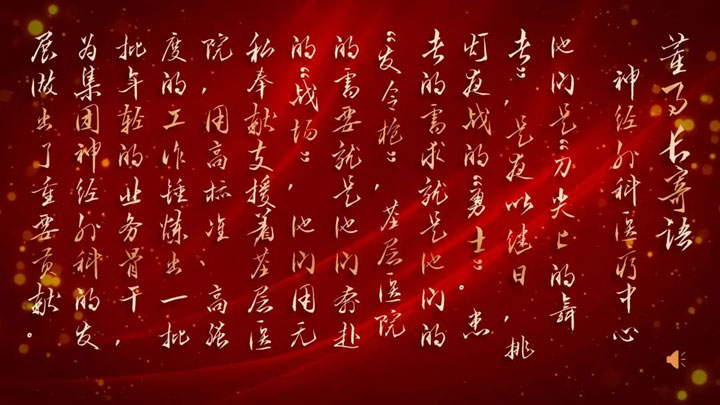 董事长解读后,聘任仪式正式开始。集团党委书记江鸿方、集团董事长江永强分别为六位为医院和科室建设立下汗马功劳,做出毕生贡献的王贵勤主任、朱满如主任、张玲主任、张淮民主任、金保贵主任、王云主任颁发“东方名医”荣誉奖杯。