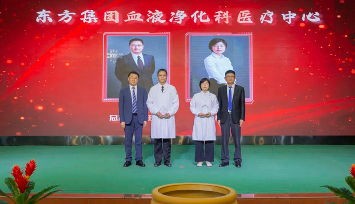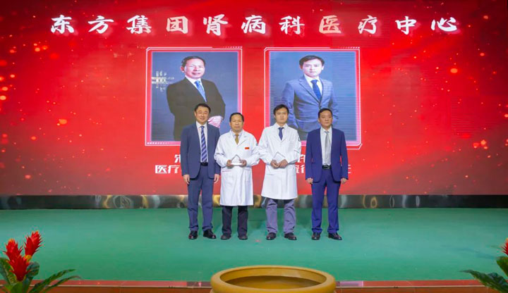 集团领导为东方医院集团肾病医疗中心院长朱明久、总院行政主任许坤颁发聘任奖杯。