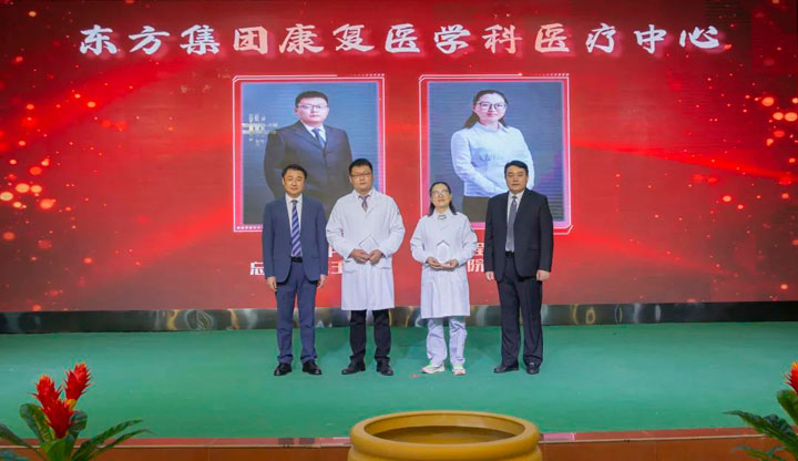 集团领导为东方医院集团总院康复医学科行政主任尚甲甲、总院副主任程庆华颁发聘任奖杯。