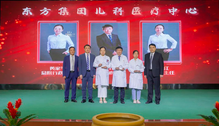 集团领导为东方医院集团儿科医疗中心院长赵守成、总院行政主任黄家琴、总院副主任夏菊红颁发聘任奖杯。