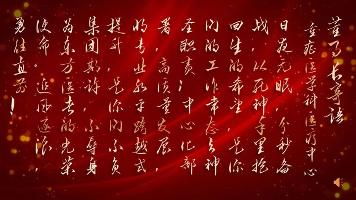 “保持热爱,奔赴山海”。董事长最后将任命奖杯底座上的两句话送给在座的所有人作为共勉,并风趣地承诺,不仅生活要有仪式感,工作也要有仪式感,待改革的春风吹到各兄弟医院时,集团也会将这种“仪式感”原封不动地“送”给大家,让大家共同感受改革带来的喜悦和荣耀!