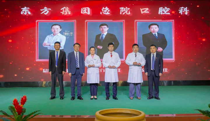 集团领导为东方医院集团总院口腔科行政主任李钱山、总院副主任李丽、总院副主任王健颁发聘任奖杯。