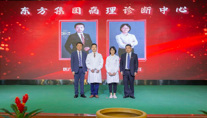 集团领导为东方医院集团病理诊断中心,医疗中心院长祁真玉、总院行政主任段萍萍颁发聘任奖杯。